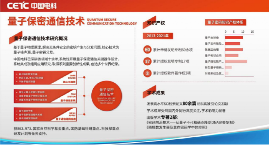 量子保密通信已創(chuàng)造多個世界紀(jì)錄,獲得獲863、973、國家自然科學(xué)基金重點、科技部重點研發(fā)計劃等30余項國家/省部級任務(wù)支持,自主突破了量子態(tài)制備、傳輸控制、探測、數(shù)據(jù)處理等關(guān)鍵技術(shù),申請發(fā)明專利60余項,研制了性能指標(biāo)國際領(lǐng)先的CV-QKD系統(tǒng)(安全碼率≥7.04Mbps@25km;最遠(yuǎn)傳輸距離202.81km),研制了性能指標(biāo)國際先進(jìn)的高速小型化QRNG樣機(實時速率>7G bits/s;離線速率117G bits/s )和國內(nèi)首款量子熵源芯片。